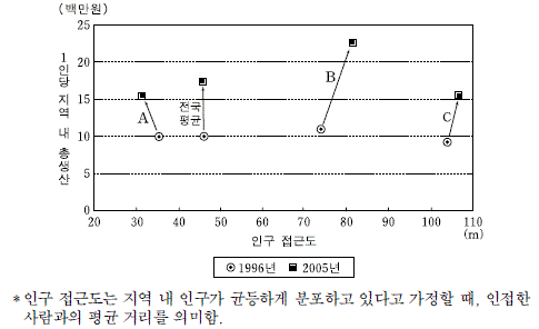 그래프의 A~C에 해당하는 지역을 바르게 배열한 것은? (순서대로 A, B, C) [3점]