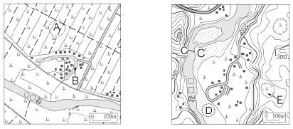 두 지도의 지형에 대한 설명으로 옳지 않은 것은? [3점]