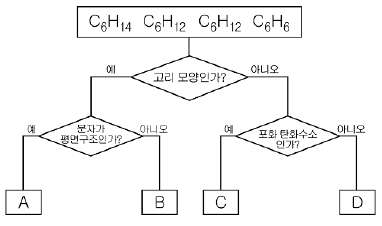 그림은 탄소수가 6개인 서로 다른 탄화수소를 주어진 기준에 따라 분류한 것이다.