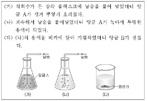 다음은 기체 A를 생성하는 실험과 A와 관련된 반응을 나타낸 것이다.