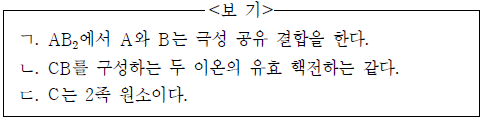 이에 대한 설명으로 옳은 것만을 <보기>에서 있는 대로 고른 것은? (단, A~C는 임의의 원소 기호이다.) [3점]