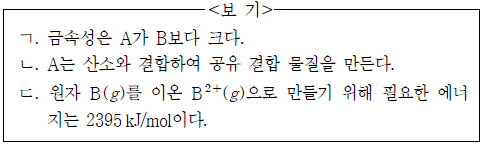 이에 대한 설명으로 옳은 것만을 <보기>에서 있는 대로 고른 것은? (단, A, B는 임의의 원소 기호이다.) [3점]