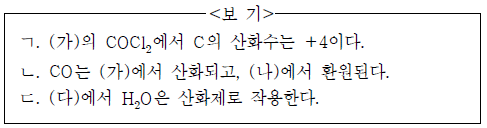 (가)~(다)는 일산화 탄소(CO)와 관련된 몇 가지 산화 환원 반응이다.
