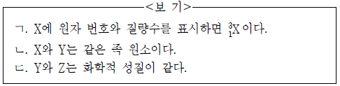 이에 대한 설명으로 옳은 것만을 <보기>에서 있는 대로 고른 것은? (단, X, Y, Z는 임의의 원소 기호이다.)