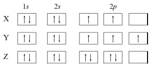 [과목 구분 없음] 그림은 중성 원자 X, Y, Z의 전자 배치를 나타낸 것이다.