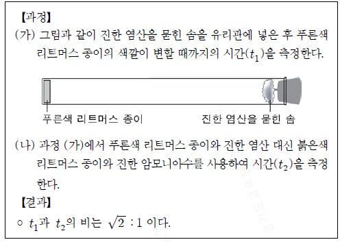 [과목 구분 없음] 다음은 기체의 확산 속도를 비교하기 위한 실험이다.