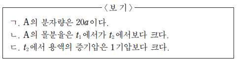 이에 대한 설명으로 옳은 것만을 <보기>에서 있는 대로 고른 것은? (단, A 는 비전해질, 비휘발성이고 물의 몰랄 오름 상수 Kb=0.52℃/m이다.) [3점]