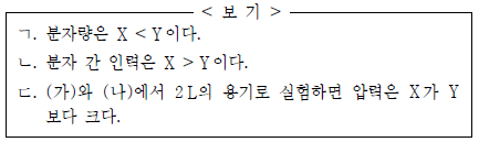 이에 대한 옳은 설명만을 <보기>에서 있는 대로 고른 것은? (단, 용기 속 액체의 부피는 무시한다.) [3점]
