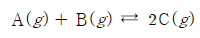[과목 구분 없음] 다음은 기체 A와 B가 반응하여 기체 C를 생성하는 화학 반응식이다.