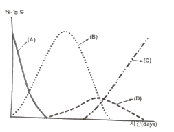 질산화 과정 동안의 질소 농도(N-농도) 변화를 나타낸 그림에서 (D)에 적합한 것은?