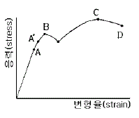 다음 그림은 연강의 응력 변형율 선도이다. 이 그림에서 C점은 무엇을 나타내는가?