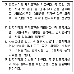 따라서, 물류센터 입지선정의 절차는 위와 같이 ㉡ - ㉢ - ㉣ - ㉠ 순서로 진행된다.