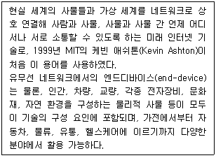 위 그림은 사물인터넷 기술을 나타내고 있다. 사물인터넷은 인터넷에 연결된 다양한 사물들이 서로 정보를 주고받고 상호작용하는 기술을 말한다. 이를 통해 우리 주변의 모든 사물들이 인터넷에 연결되어 스마트하게 제어되고 모니터링될 수 있게 된다. 따라서 위 그림에서 보이는 것처럼 가전제품, 차량, 건물 등 모든 사물들이 인터넷에 연결되어 정보를 주고받는 것이 가능해진다.