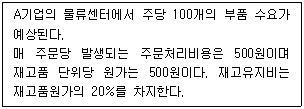 [유통물류일반] 다음 내용을 토대로 하여 경제적 주문량(EOQ)을 구하면? (단, 1년은 52주로 적용하고 EOQ 산출값은 소수점 첫째자리에서 내림한다.)