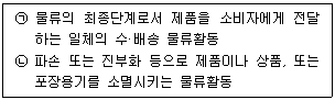㉠판매물류는 제품이 생산된 후 출하되어 고객에게 판매될 때까지의 물류영역을 말하며, ㉡폐기물류는 제품이 폐기되는 과정에서의 물류영역을 말한다.