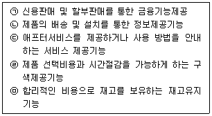 [유통물류일반] 아래 글상자의 내용 중 소비자를 위한 소매상의 기능으로 옳은 것만을 나열한 것은?