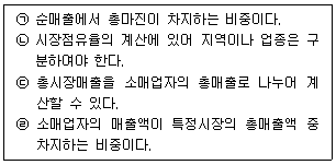 [유통물류일반] 아래 글상자에서 시장점유율에 관한 설명으로 옳은 것을 모두 고르면?