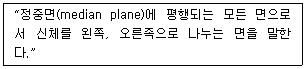이 그림은 인체를 왼쪽과 오른쪽으로 나누는 평면을 보여주고 있으며, 이를 시상면이라고 합니다. 시상면은 인체를 왼쪽과 오른쪽으로 나누는 평면으로, 인체를 좌우로 나누는 방향입니다. 따라서 이 그림은 시상면에서 본 인체의 구조를 보여주고 있습니다.