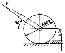 [재료역학] 그림에서와 같이 지름이 50cm, 무게가 100N의 잔디밭용 롤러를 높이 5cm의 계단위로 밀어서 막 움직이게 하는데 필요한 힘 F는 몇 N 인가?