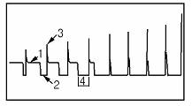 아래 그림은 EGR량 증가 시의 솔레노이드 파형이다. 구동전압을 나타낸 것은?