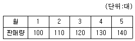 다음 [표]는 A 자동차 영업소의 월별 판매실적을 나타낸 것이다. 5개월 단순 이동 평균법으로 6월의 수요를 예측하면 몇 대인가?