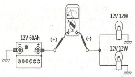 회로가 그림과 같이 연결되었을 때 멀티미터가 지시하는 전류 값은 몇 A인가?