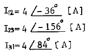 [회로이론 및 제어공학] △ 결선된 3상 회로에서 상전류가 다음과 같을 때 선전류 I1, I2, I3 중에서 그 크기가 가장 큰 것은 몇 [A]인가?