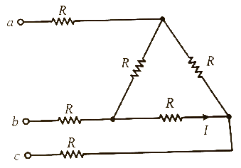 [회로이론 및 제어공학] 그림과 같이 결선된 회로의 단자(a, b, c)에 선간전압이 V(V)인 평형 3상 전압을 인가할 때 상전류 I(A)의 크기는?