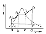 그림은 랭킨사이클을 나타내는 T-S(온도-엔트로피) 선도이다. 여기에서 A2-B의 과정은 화력 발전소의 어떤 과정에 해당되는가?