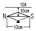 [전기자기학] 그림에서 직선 도체 바로 아래 10cm 위치에 지침이 나란히 있다고 하면 이때의 자침에 작용하는 회전력은 약 몇 [N·m/rad]인가? (단, 도체의 전류는 10[A], 자침의 자극의 세기는 10-6[Wb]이고, 자침의 길이는 10[cm]이다.)