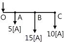 그림과 같은 배전선이 있다. 급전점 O의 전압을 110V라 하면 C점의 전압은? (단, OA, AB, BC간의 저항은 각각 0.2[Ω]이며, 부하 역률은 100%이다.)