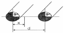 그림과 같이 반지름 a[m]인 원형 단면을 가지고 중심 간격이 d[m]인 평행왕복도선의 단위 길이당 자기인덕턴스[H/m]는? (단, 도체는 공기중에 있고 d ≫ a로 한다.)