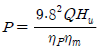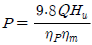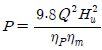 [전력공학] 펌프의 양수량 Q[m3/sec], 유효 양정 Hu[m], 펌프의 효율 ηp, 전동기의 효율 ηm일 때, 양수 발전기의 출력[kW]은?