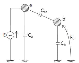 전력선 a의 충전전압을 E, 통신선 b의 대지 정전용량을 Cb, a-b 사이의 상호 정전용량을 Cab라고 하면 통신선 b의 정전 유도 전압 Es 는?