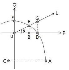 그림과 같은 수전단 전력원선도에서 직선 OL은 지상역률 cosθ 인 부하직선을 나타낸다. 다음 설명 중 옳지 않은 것은? (단, C점은 원선도의 중심점이다.)