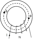 그림과 같은 공심 토로이드 코일의 권선수를 N배하면 인덕턴스는 몇 배 되는가?