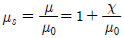 투자율을 μ라 하고 공기중의 투자율 μ0와 비투자율 μs의 관계에서