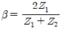 따라서, β를 계산하기 위해서는 Z1과 Z2의 값을 알아야 한다. 그러나 문제에서는 이 값들을 주어주지 않았다. 대신에 보기에서 각각의 파동 임피던스에 대한 그래프를 제공하고 있다.
