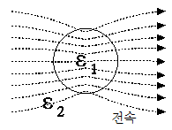그림과 같은 유전속 분포가 이루어질 때 ɛ1과 ɛ2의 크기 관계는?