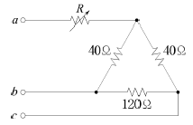 [회로이론 및 제어공학] 그림과 같은 순 저항회로에서 대칭 3상 전압을 가할 때 각 선에 흐르는 전류가 같으려면 R의 값은 몇 Ω 인가?
