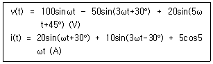 [회로이론 및 제어공학] 전압 및 전류가 다음과 같을 때 유효전력[W] 및 역률[%]은 각각 약 얼마인가?