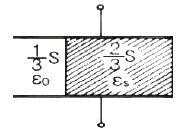 그림과 같은 정전용량이 C0[F]되는 평행판 공기콘덴서의 판면적의 2/3 되는 공간에 비유전율 εs인 유전체를 채우면 공기콘덴서의 정전용량은 몇 F 인가??