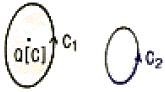 그림과 같이 진공 중에 전하량 Q[C]인 점전하 Q를 둘러싸는 경로 C1과 둘러싸지 않은 폐곡선 C2가 있다. 지금 +1[C]의 전하를 화살표 방향으로 경로 C1을 따라 일주시킬 때 요하는 일을 W1, 경로 C2를 일주시키는데 요하는 일을 W2라 할 때, 옳은 것은?