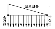 그림에서와 같이 부하가 균일한 밀도로 도중에서 분기되어 선로 전류가, 송전단에 이를수록 직선적으로 증가할 경우 선로 말단의 전압 강하는 이 송전단 전류와 같은 전류의 부하가 선로의 말단에만 집중되어 있을 경우의 전압강하보다 대략 어떻게 되는가? (단, 부하역률은 모두 같다고 한다 )