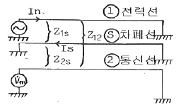 [전력공학] 전력선과 통신선사이에 그림과 같이 차폐선을 설치하며 각 선사이의 상호임피던스를 각각 Z12, Z1s, Z2s라 하고 차폐선 자기임피던스를 Zs라 할 때 저감계수를 나타낸 식은?