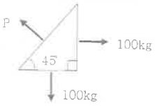 [전기철도 구조물공학] 그림과 같이 삼각형구조가 평형상태에 있을때 법선방향에 대한 힘의 크기 P는 약 몇 [kg]안가?