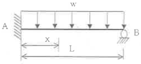 그림과 같은 부정정보에서 A점으로부터 전단력이 0 이 되는 지점 X 값은?