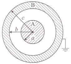 [전기자기학] 그림과 같이 공기 중 3개의 동심 구도체에서 내구(A)에만 전하 Q를 주고 외구(B)를 접지하였을 때 내구(A)의 전위는?