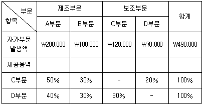[원가관리회계] 다음의 부문별 원가계산 자료를 토대로 보조부문비를 상호배부법으로 배부할 경우 옳지 않은 설명은?