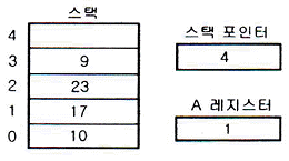 스택의 구조가 다음 그림과 같을 때 ″POP A″ 명령을 수행한 후 스택포인터 및 A 레지스터의 값은?